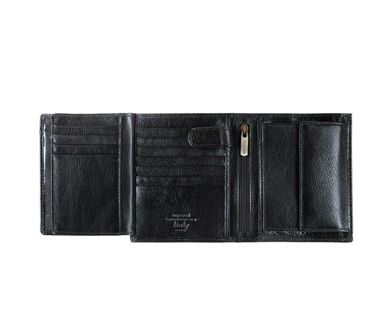 Wysoka jakość przeważnie idzie w parze z wysoką ceną. W tym miejscu chcemy odrzucić ten stereotyp i udowodnić, że nie zawsze musi tak być. Męski portfel firmy Wittchen wykonany jest z wysokiej jakości skóry cielęcej i dostępny w bardzo przystępnej cenie. Produkt, który oferujemy, posiada świetne zabezpieczenie - RFID Blocking System, dzięki któremu każda znajdująca się wewnątrz karta będzie zabezpieczona, ponieważ potencjalny złodziej, nie będzie w stanie odczytać z niej żadnej informacji. Oprócz tego portfel jest bardzo praktyczny i funkcjonalny - posiada kieszeń na bilon, dwie kieszenie na banknoty, aż jedenaście miejsc na karty kredytowe, o których posiadanie już teraz nie trzeba będzie się bać. Dodatkowo wyposażony jest w pięć kieszeni, w tym w dwie przezroczyste, w których można nosić rzeczy warte pamięci czy zdjęcia bliskich osób. Portfel ma także ukryty schowek, zamykany na suwak. Wymiary oferowanego przez nas produktu to 12,5 cm x 11 cm. Panowie, którzy lubią nosić portfel w spodniach, będą zachwyceni jego wymiarami. Doskonale nadawać się także będzie do męskiej torby czy saszetki. Czarny kolor pozwoli dopasować go do pozostałych elementów galanterii lub stylizacji.