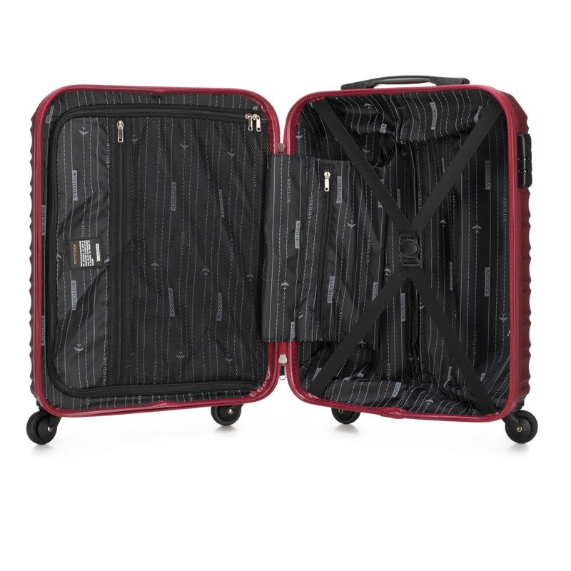 - klapa walizki zabezpieczona materiałową przegrodą zapinaną na suwak,