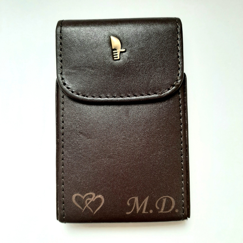 Etui to jest to outlet z uwagi na wykonane już znakowanie, czyli grawer grafiki i inicjałów podanych wyżej.