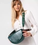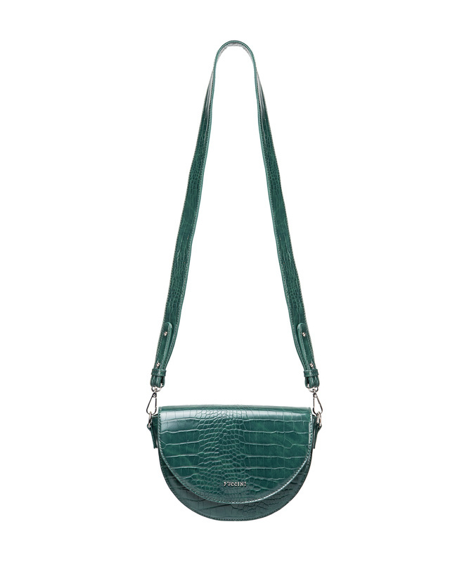 Torebka jest niewielkich rozmiarów, ale dzięki zastosowaniu dodatkowych kieszonek pomieści wszystko czego potrzebujesz na wyjście. Wewnątrz komory głównej znajdują się dwie kieszonki: jedna otwarta, druga zapinana na zamek. Na froncie listonoszka posiada półokrągłą klapę zamykaną na magnes z subtelnym logo Puccini w kolorze srebra. Torebkę można nosić na ramieniu lub poprzek ciała.