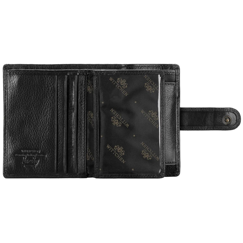 Średniej wielkości, portfel firmy Wittchen wykonany jest z wysokiej jakości skóry cielęcej. Jest bardzo praktyczny i funkcjonalny - posiada wygodne zapięcie na zatrzask oraz innowacyjną podszewkę anty-RFID, blokującą możliwość skanowania danych z karty. Poza tym ma kieszeń na bilon, na banknoty oraz aż sześć miejsc na karty kredytowe. Dodatkowo wyposażony jest w trzy kieszenie otwarte, w tym jedną przezroczystą, w których można nosić rzeczy warte pamięci. Czarny kolor pozwoli dopasować go do pozostałych elementów galanterii lub stylizacji.