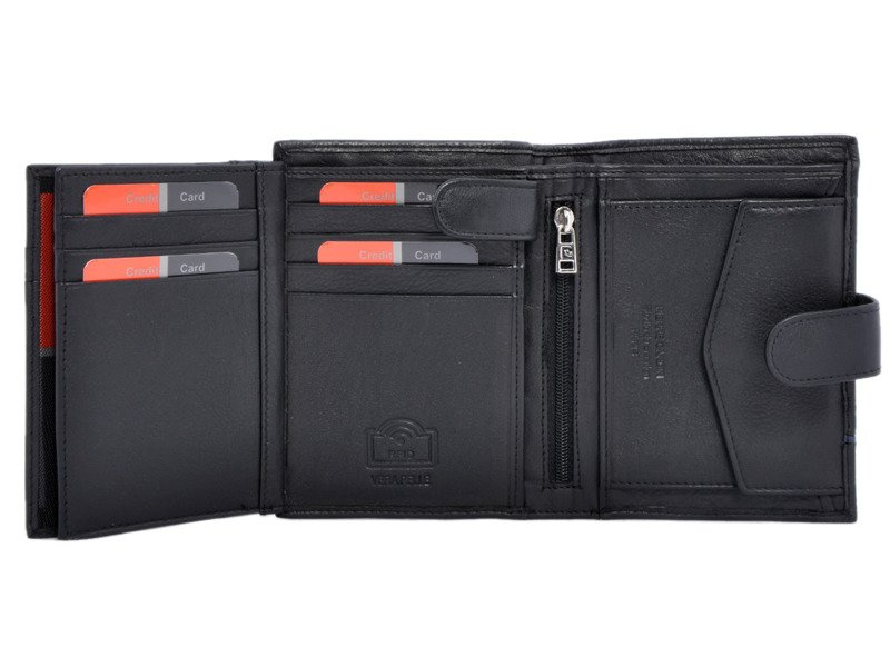 Portfel męski PIERRE CARDIN SAHARA TILAK 326A czarny z czerwonym paskiem.