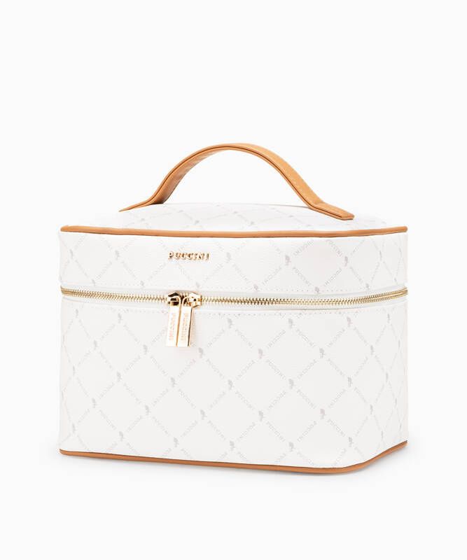 Kosmetyczka z kolekcji Monogram charakteryzuje się klasyczną formą z efektownym designem, które z pewnością zadowolą niejednego miłośnika podróży. Model wykonany jest z odpornej, wysokogatunkowej skóry ekologicznej.