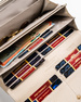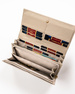 Od strony ciała portfel zapinany jest na napę z zatrzaskiem. W tej części portfela jest 12 miejsc na karty plus jedna kieszonka przezroczysta na przykład na zdjęcie. Pod miejscem na karty jedna duża kieszeń otwarta.