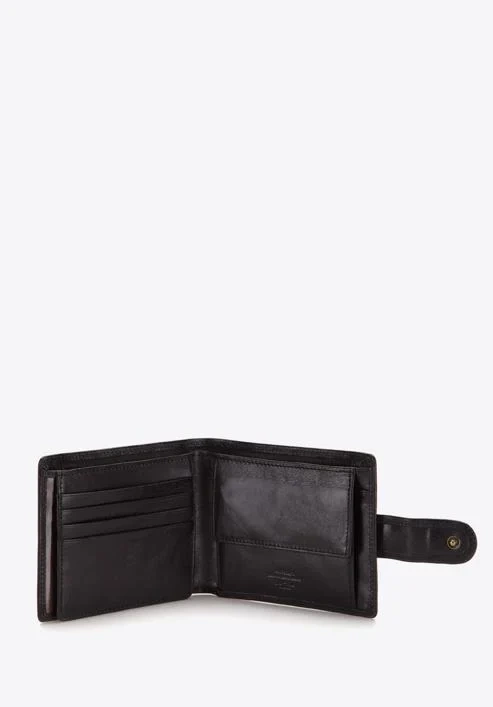 Portfel męski, doda każdemu mężczyźnie klasy i elegancji. Wysoka jakość skóry, z której wykonany jest wyżej wymieniony model, a także praktyczna budowa portfela (duża ilość różnych kieszeni- 8 miejsc na karty, 2 kieszenie na banknoty, kieszeń na bilon, 2 kieszenie w tym jedna przezroczyste), czyni go produktem biznesowym. Portfel pomieści również dowód rejestracyjny, co bardzo często jest wyznacznikiem w decyzji o zakupie. Uniwersalny rozmiar produktu również jest zaletą, ponieważ jego wymiary pozwolą na swobodne przechowywanie go w kieszeni płaszcza, czy w małej naramiennej torbie. Plusem jest również kolor - czarny, ponieważ wpasuje się on w każdą stylizację oraz będzie współgrał z innymi elementami galanterii. Pisząc o zaletach portfela, trzeba wspomnieć także o cenie. Wydając niewygórowaną kwotę, mogą nabyć Państwo produkt nietuzinkowy, ekskluzywny, który spełni nie tylko oczekiwania klientów nabywających go dla własnych potrzeb, ale sprawdzi się on również jako prezent. Jeżeli oczekują Państwo czegoś wyjątkowego, szykownego i praktycznego, to z pewnością to jest to!