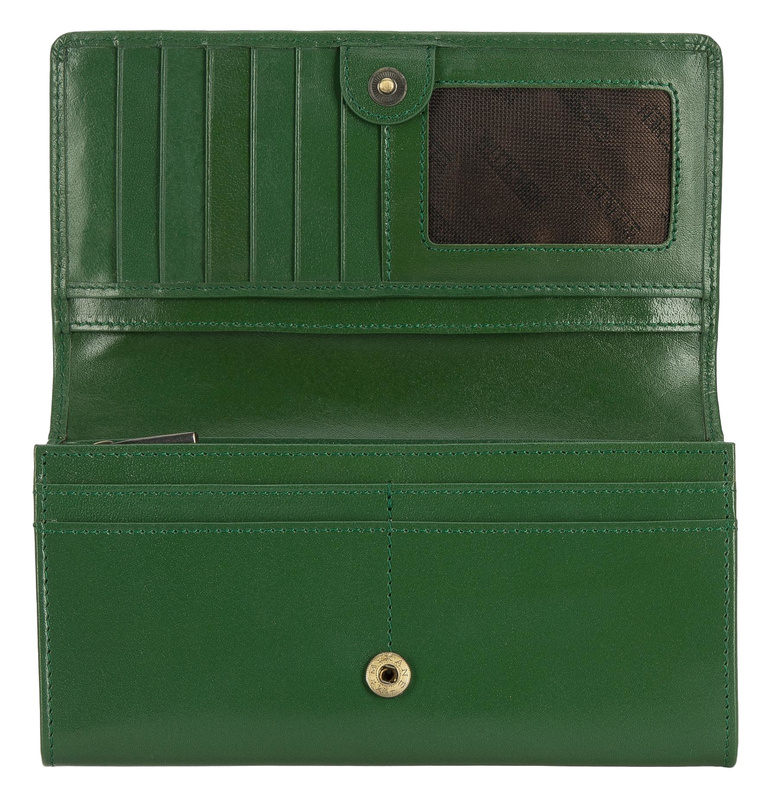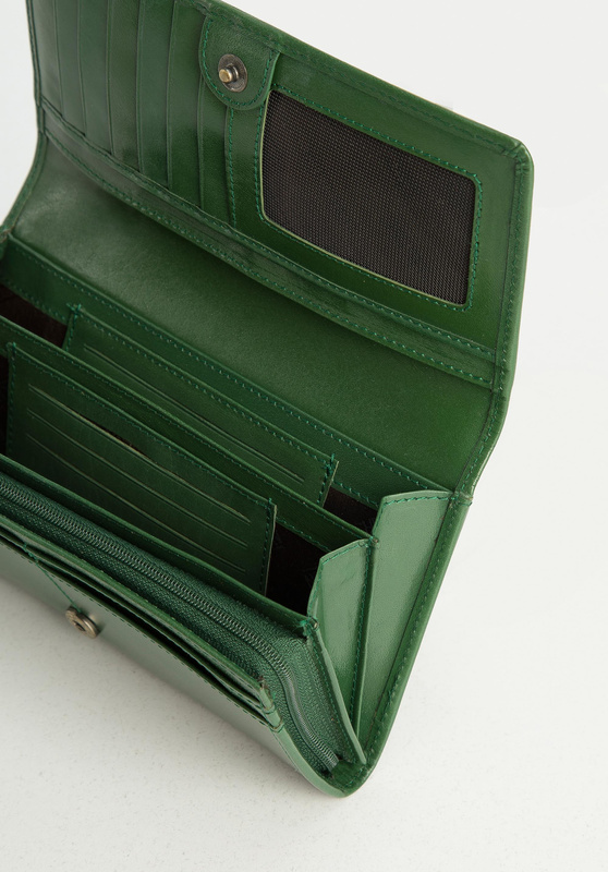 Ten portfel spodoba się wszystkim miłośniczkom klasyki, lubiącym dobrze zorganizowane dodatki. Wykonany został z wysokiej jakości skóry naturalnej, która będzie wyglądała dobrze przez wiele sezonów. Wewnątrz ma dużo miejsc na karty, otwarte przegródki, kieszeń na bilon zapinaną na suwak i kieszeń z siatki, do których schowasz na przykład zdjęcie lub bilet. Ponadto podszewka w tym modelu chroni karty przed sczytywaniem danych (RFID). Poziomy damski portfel z gładkiej skóry to elegancki dodatek na co dzień dla każdej stylowej kobiety.