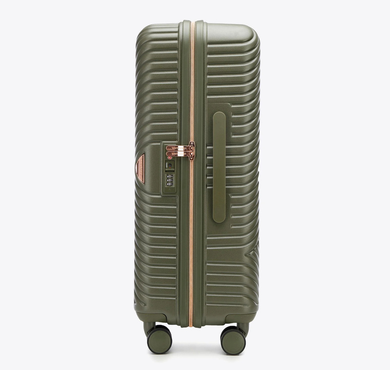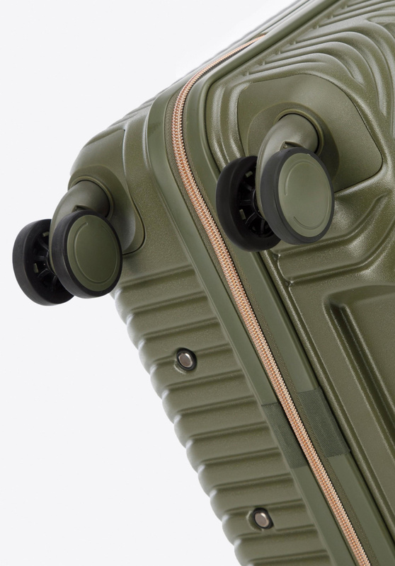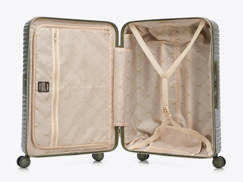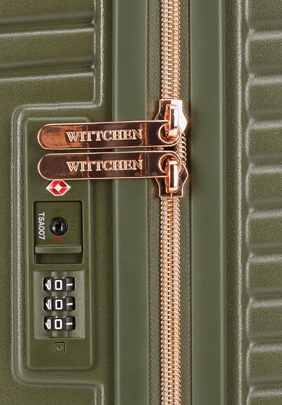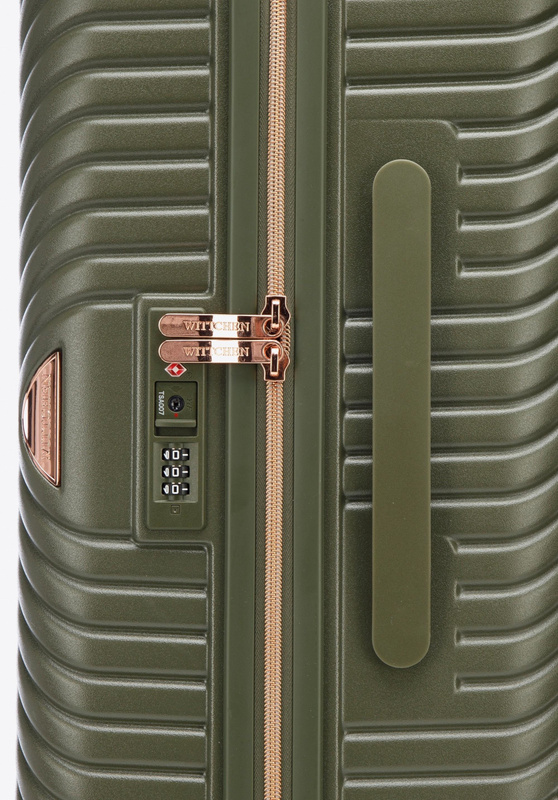 Poznaj walizkę, która idealnie łączy styl z praktycznością! Wykonana z trwałego polikarbonu o matowym wykończeniu, walizka z kolekcji GL Style to designerski dodatek do Twoich podróży. Lśniące okucia w kolorze różowego złota dodają jej wyjątkowego charakteru, a beżowa podszewka z logo WITTCHEN podkreśla dbałość o detale.