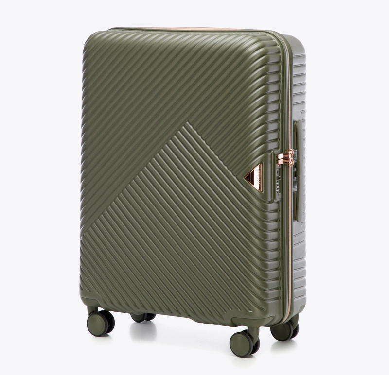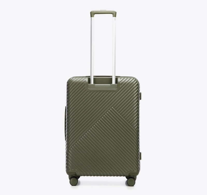 Idealna dla kobiet ceniących modę i wygodę. Geometryczne wzornictwo i gra kontrastów sprawiają, że ta walizka to idealny wybór dla osób podążających za najnowszymi trendami.