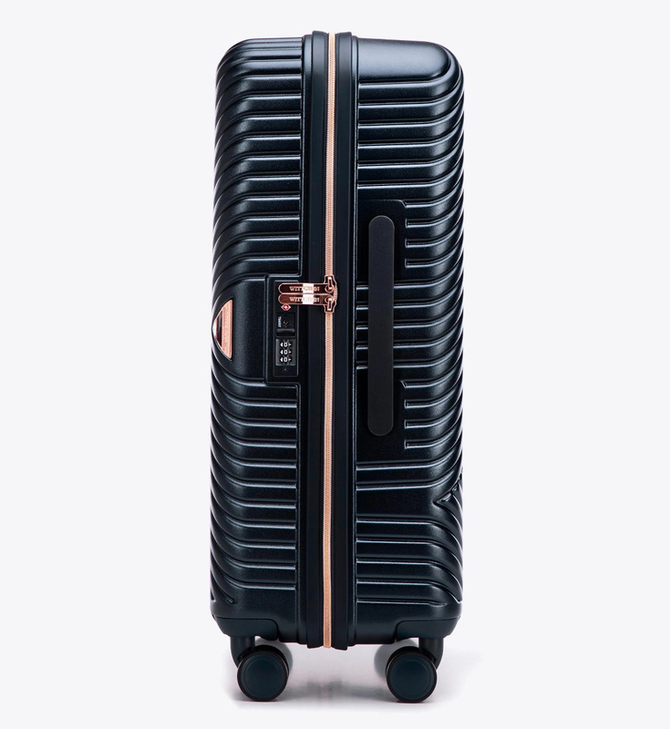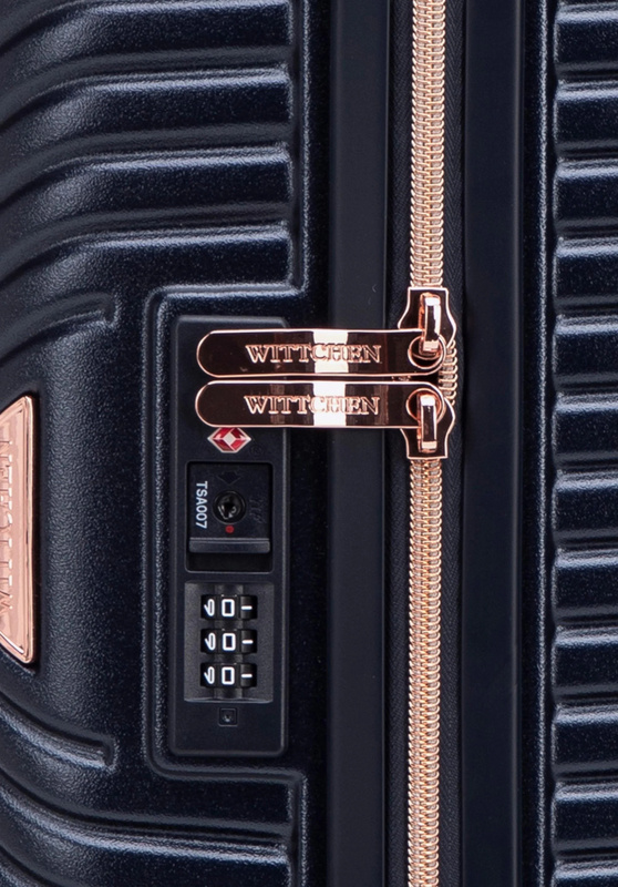 Poznaj walizkę, która idealnie łączy styl z praktycznością! Wykonana z trwałego polikarbonu o matowym wykończeniu, walizka z kolekcji GL Style to designerski dodatek do Twoich podróży. Lśniące okucia w kolorze różowego złota dodają jej wyjątkowego charakteru, a beżowa podszewka z logo WITTCHEN podkreśla dbałość o detale.