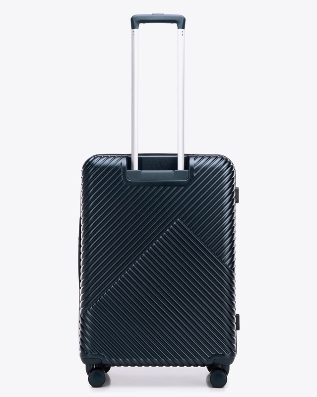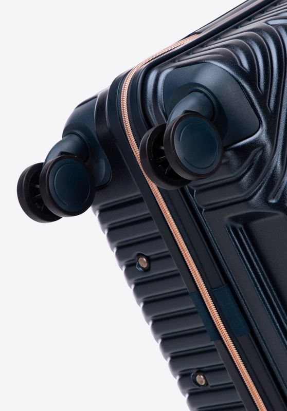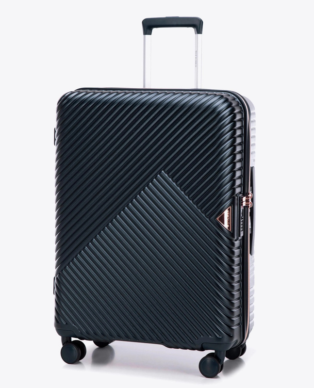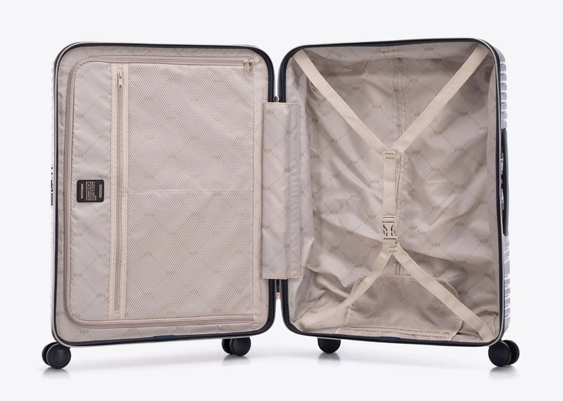 Idealna dla kobiet ceniących modę i wygodę. Geometryczne wzornictwo i gra kontrastów sprawiają, że ta walizka to idealny wybór dla osób podążających za najnowszymi trendami.