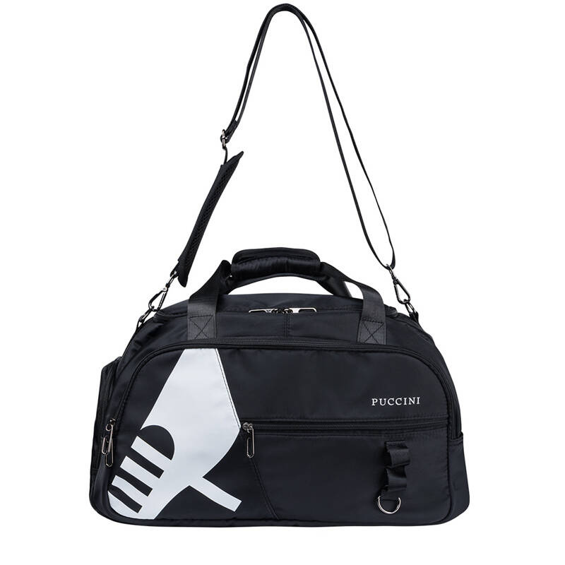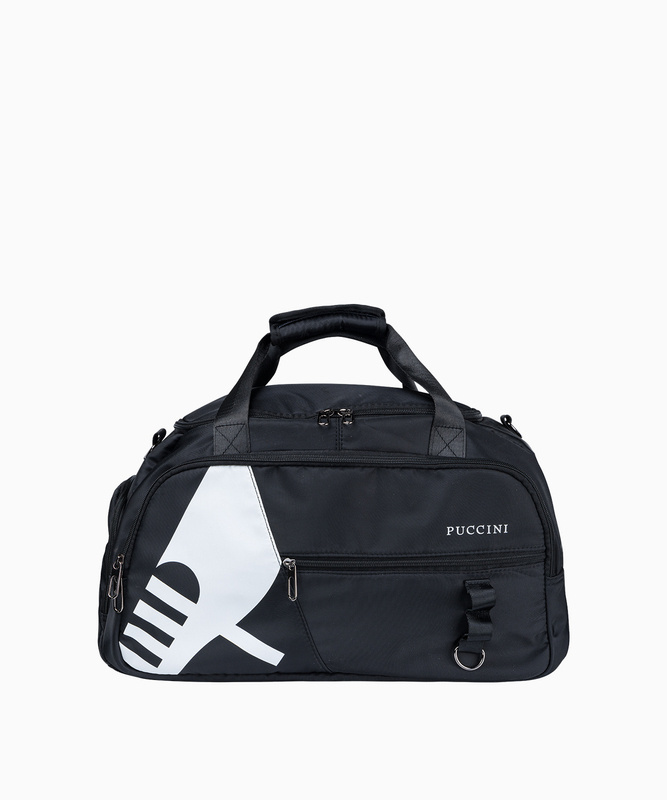 Klasyczna, wielofunkcyjna torba PUCCINI świetne sprawdzi się na weekendowy wypad lub krótką podróż. Może również posłużyć jako torba na siłownie czy na fitness lub basen. Jest ponadczasowa i super lekka. Wykonana została z trwałego materiału jakim jest poliester z poliuretanem. Uchwyty, rączki torby można spiąć dzięki czemu swobodnie będziesz przenosił bagaż. Można ją również nosić na ramieniu, dzięki regulowanemu, doczepianemu paskowi. Prosty fason zapewne zachwyci niemal każdego użytkownika tej kolekcji. Dzięki swoim rozmiarom pomieści w sobie najpotrzebniejsze rzeczy. Na froncie oryginalne logo i kieszeń z suwakiem. Wewnątrz torby znajduje się kieszeń zamykana na suwak, która jest wyścielona wodoodpornym materiałem. Oprócz tego w środku znajdują się dwie przegrody z siatki i jedna mała kieszeń na suwak. Całość torby pokryta jest powłoką water -repelent, dzięki temu woda spływa po niej. Z tyłu torby od strony ciała znajduje się uchwyt umożliwiający zamontowanie jej na stelażu walizki.