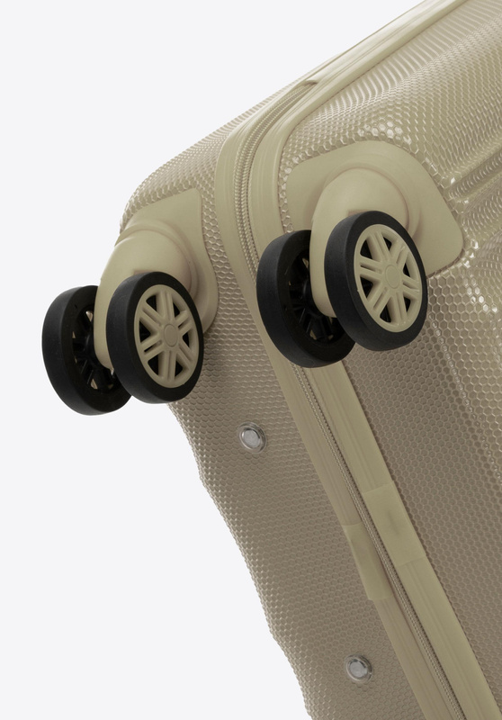 Tekstura w stylu plastra miodu nie tylko wygląda nowocześnie, ale też dodatkowo chroni powierzchnię walizki.