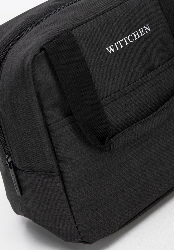 Wnętrze komory głównej lanczówki, wyściełane podszewką termoizolacyjną, dzięki czemu ciepły posiłek dłużej zatrzyma swoja temperaturę. Jest jeszcze jedna zaleta takiej wyściółki, jeśli coś się wyleje w śniadaniówce możesz być pewny, że płyn nie wydostanie się poza torebkę. Kolejnym atutem torebki to bardzo łatwe czyszczenie jej środka. Na froncie listonoszka posiada logo w odcieniu białym, które doskonale współgra z czarnym kolorem torebki. Wygodne zapięcie na suwak umożliwia komfortowy dostęp do zawartości. Na zewnątrz jedna kieszonka otwarta.