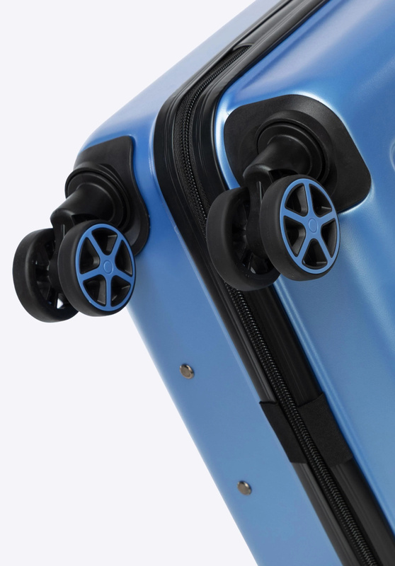 ✔ Cztery podwójne kółka – pełny zakres obrotu 360° zapewnia płynne prowadzenie. ✔ Stabilność – boczne nóżki umożliwiają bezpieczne postawienie walizki. ✔ Ergonomiczne uchwyty – dwa gumowe uchwyty ułatwiają przenoszenie. ✔ Regulowana teleskopowa rączka – stalowa konstrukcja z blokadą umożliwia dopasowanie do wzrostu użytkownika.