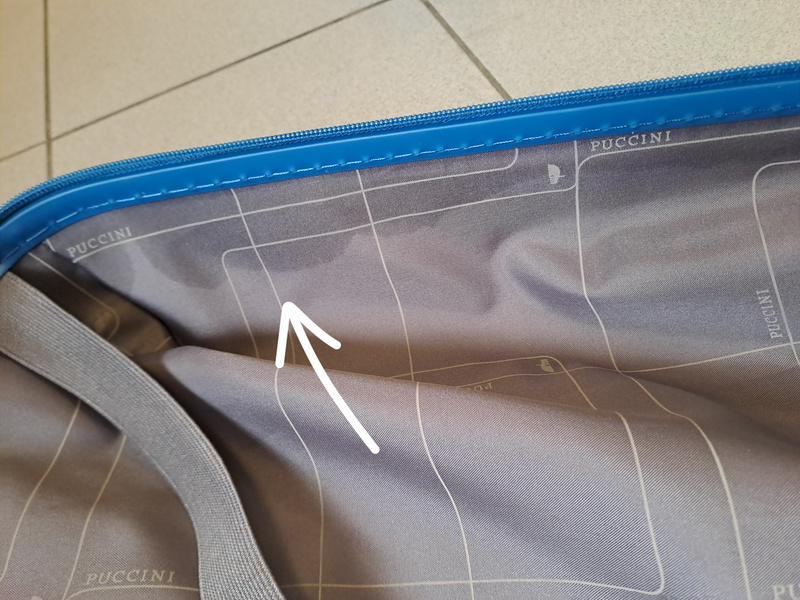 Walizka jest outletem ze względu na ciemne odbarwienia w środku produktu. Dołączyliśmy do galerii dwa zdjęcia ze strzałkami by przedstawić odbarwienia w walizce.