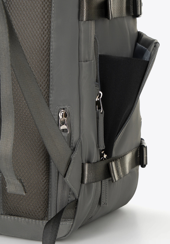 • Uchwyt do bagażu: Ułatwia przymocowanie plecaka do walizki.