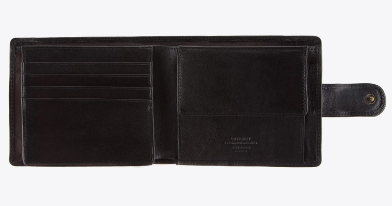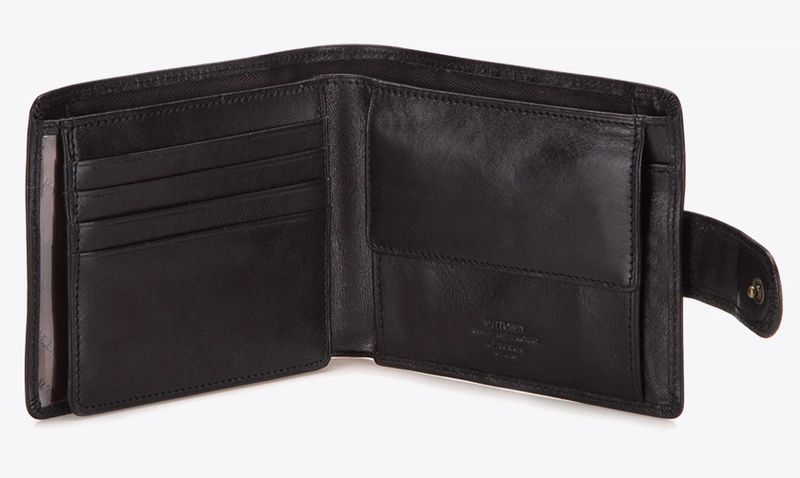 • Funkcjonalne wnętrze – 2 kieszenie na banknoty (w tym jedna zapinana na suwak), kieszeń na bilon, 8 miejsc na karty.