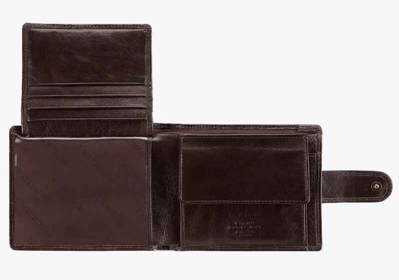 • Eleganckie wykończenie – herb WITTCHEN w kolorze starego złota nadaje portfelowi luksusowego charakteru.