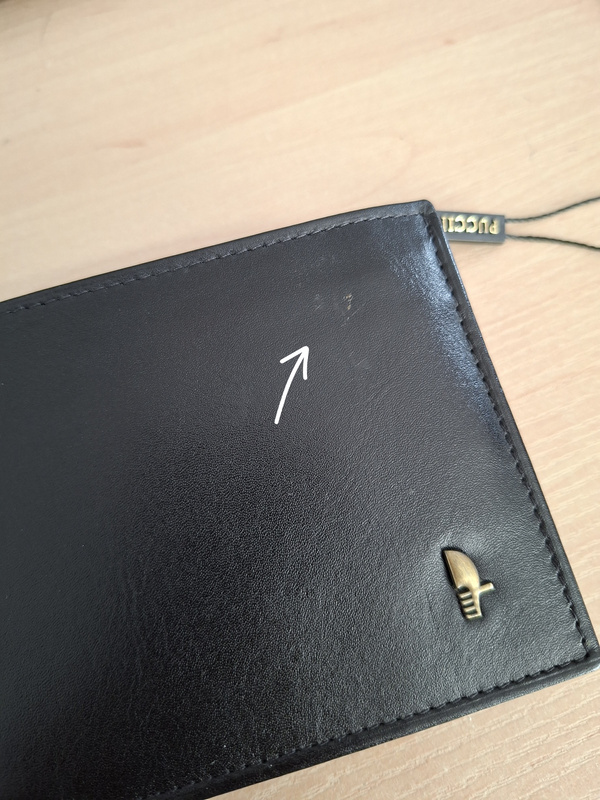 Portfel jest outletem ze względu na niewielkie odbarwienie na froncie portfela oraz na kieszonce na bilon.