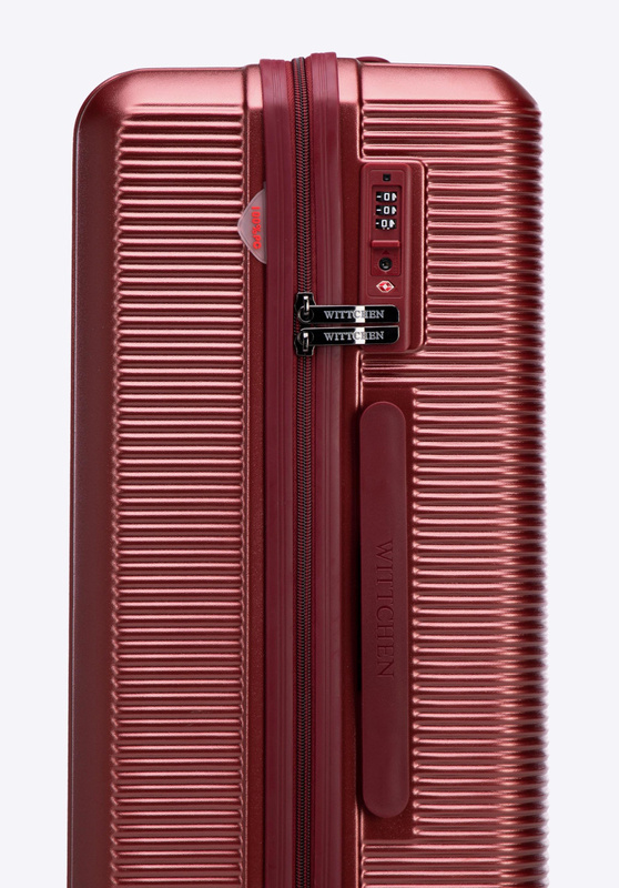 Nowoczesny wygląd – pionowe pasy i gładki panel środkowy dodają walizce klasy