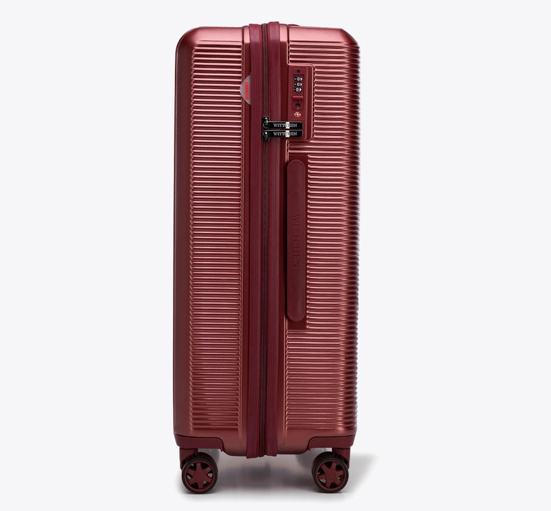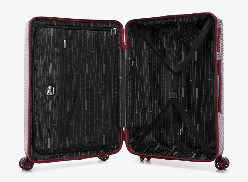 Nowoczesny wygląd – pionowe pasy i gładki panel środkowy dodają walizce klasy