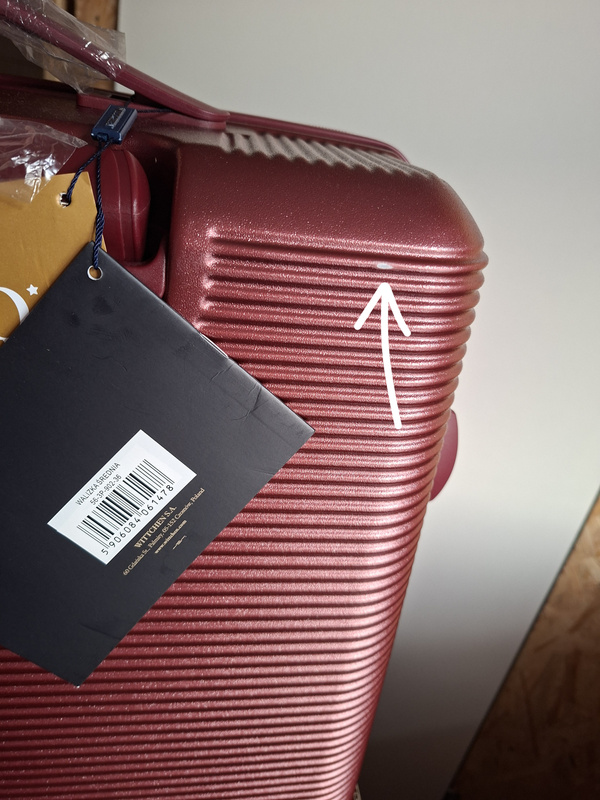 Ten produkt jest outletem ponieważ z tyłu walizki jest maleńki fragment niepolakierowany. Zdjęcie tego ,,fragmentu,, walizki zaprezentowaliśmy w tej ofercie.
