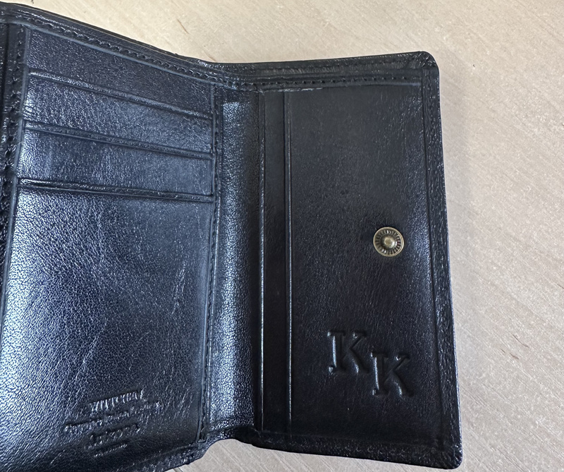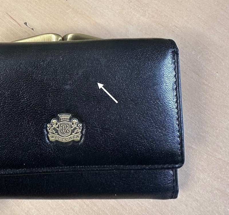 Produkt jest outletem ze względu na delikatne zarysowania na na przodzie portfela oraz wytłoczone inicjały w środku (widoczne na ostatnim zdjęciu)