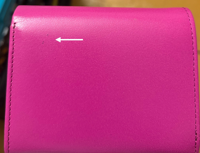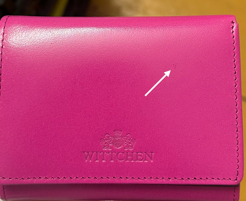 Produkt jest outletem ze względu na niewielką ryskę na skórze z przodu portfela i plamkę z tyłu. Widoczne są one na dwóch ostatnich zdjęciach.